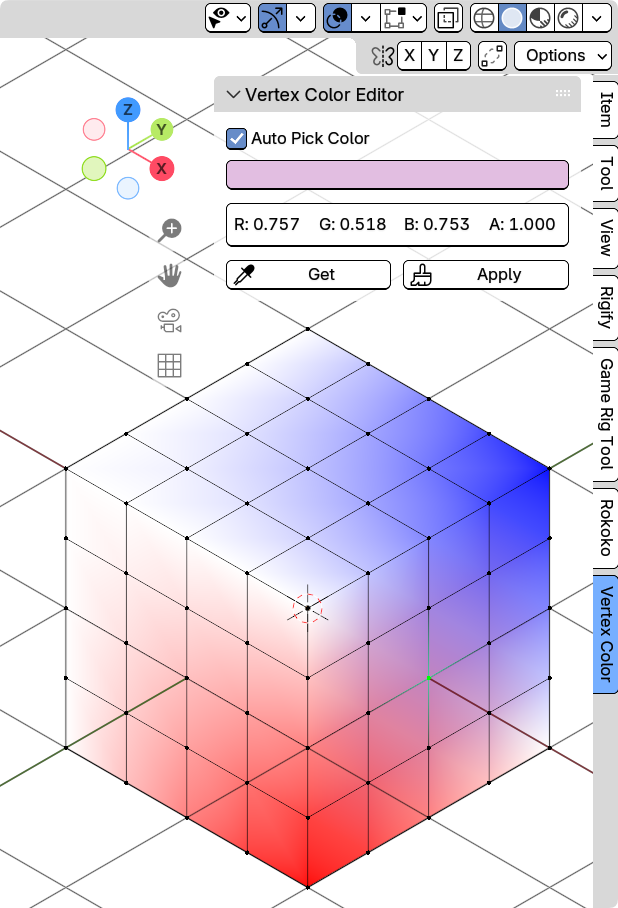 - 使用Get获取选择的顶点的顶点色/手动设置一个顶点色